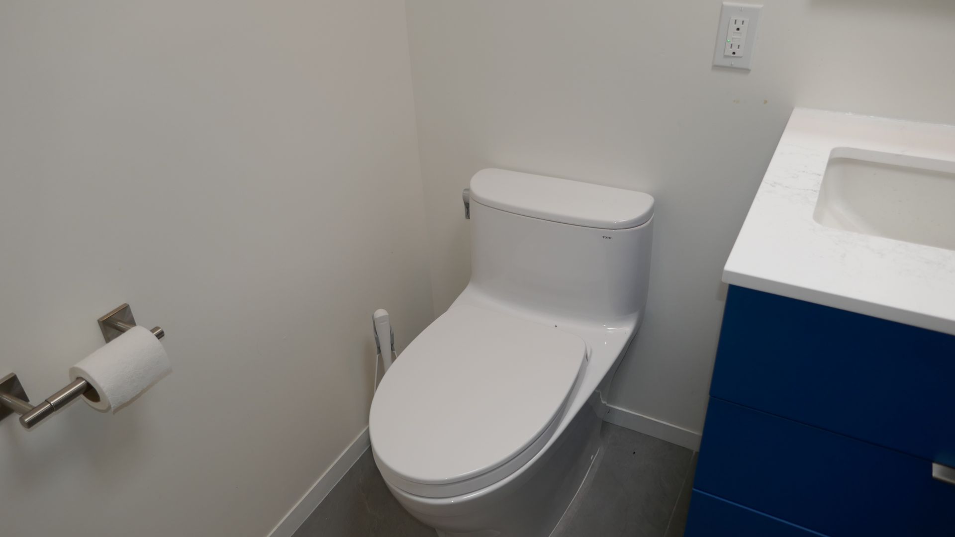 Hard tile flooring throughout for a sleek, easy-to-maintain look.