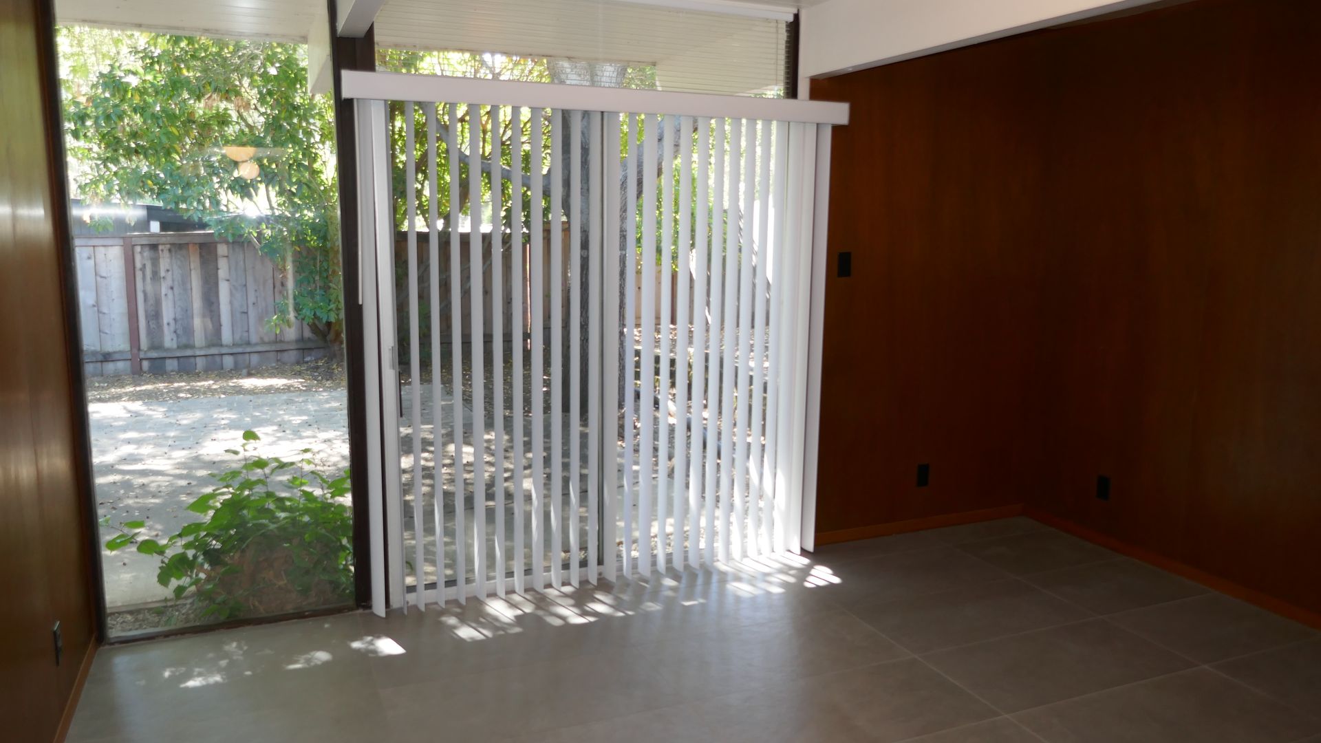 Primary bedroom, living room, kitchen, and dining area all offer direct backyard access.